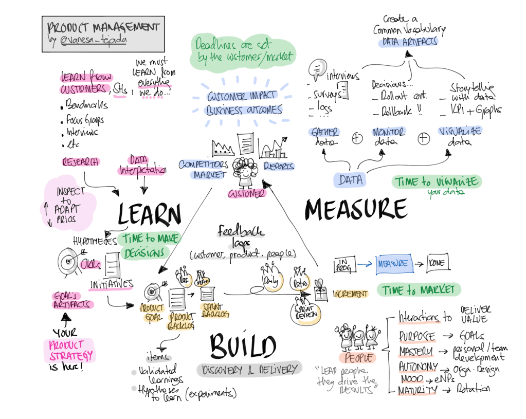 Como conclusión, que este sketch no es una receta, ni la mejor manera de hacer producto, ni contiene todo lo que hay que saber, sino los conceptos que más utilizo. Os recomiendo que encontréis vuestro propio camino experimentando con diferentes metodologías, técnicas para administrar y construir productos y luego elegir las que funcionen mejor en vuestro contexto.